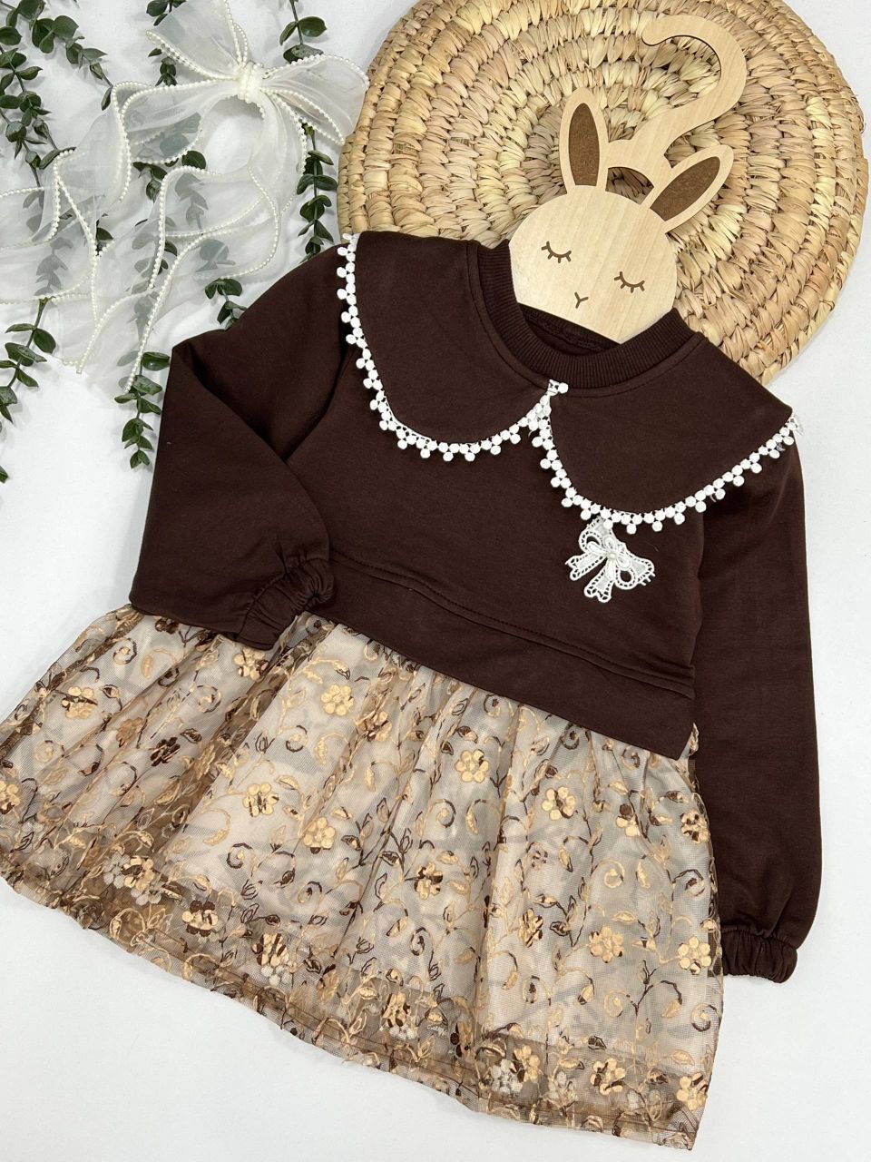 ✅جنس پیراهن : بالا تنه دورس پنبه دامن پیراهن تور طرحدار